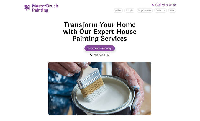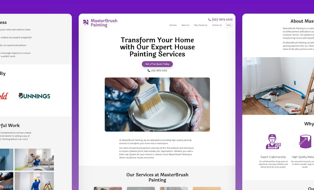 This simple, professional house painting website template keeps clients engaged. The purple design focuses on smooth navigation, high-quality images, and a layout that works beautifully on mobile. The built-in contact form is right where clients need it, helping you get more inquiries without extra effort.
