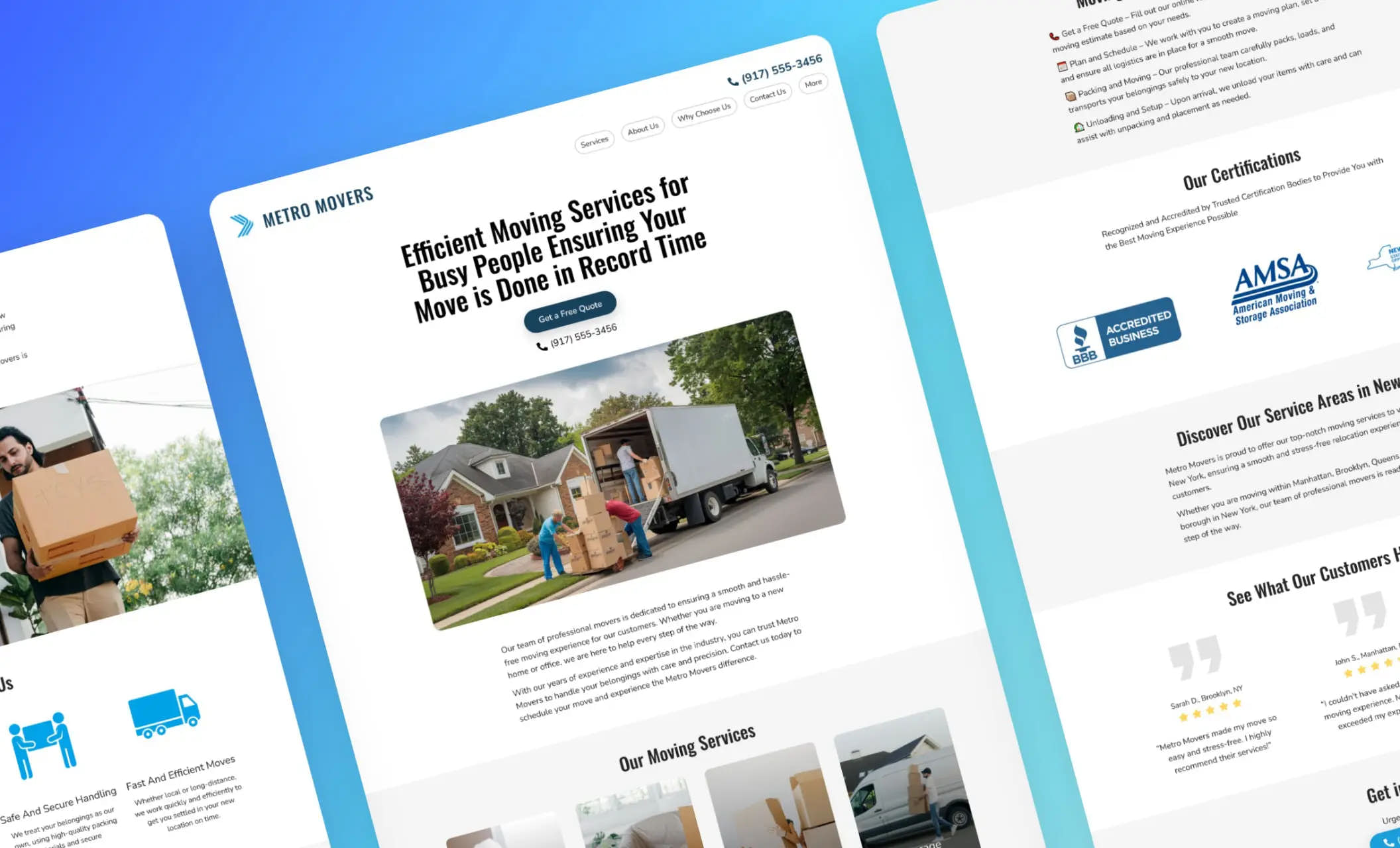 Help busy clients book their move with a site that’s quick, clear, and focused. Big images, streamlined content, and trust-building elements guide visitors to choosing your services without any hassles.