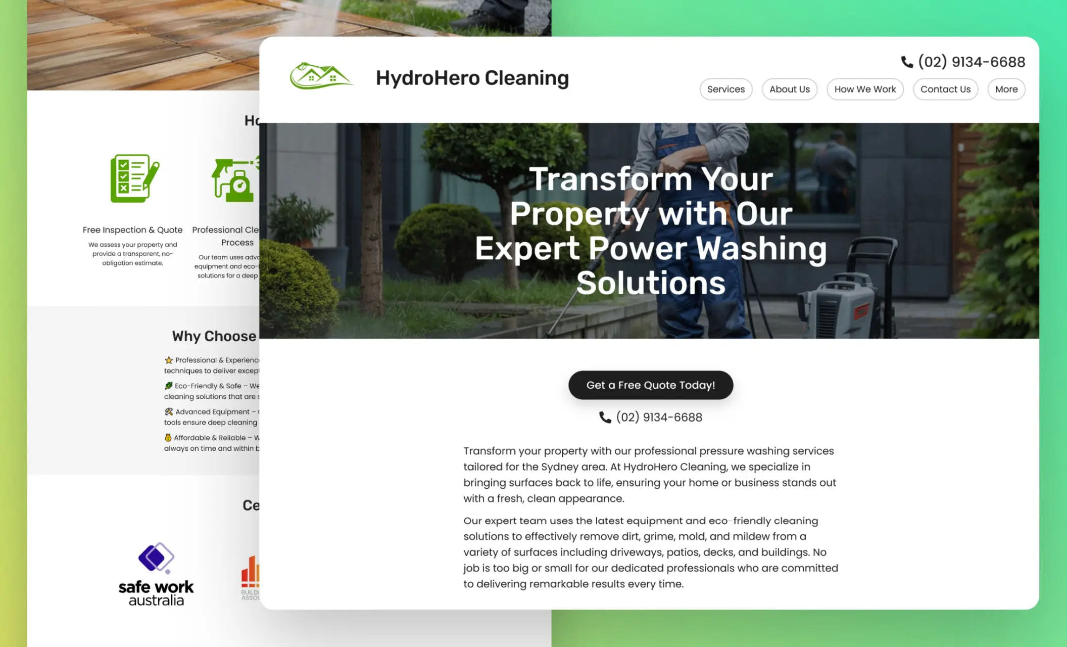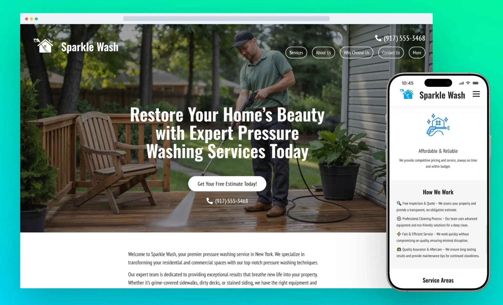 Create a pressure washing site that works as hard as you do. These templates are quick to set up, easy to edit, and optimized for Google rankings.